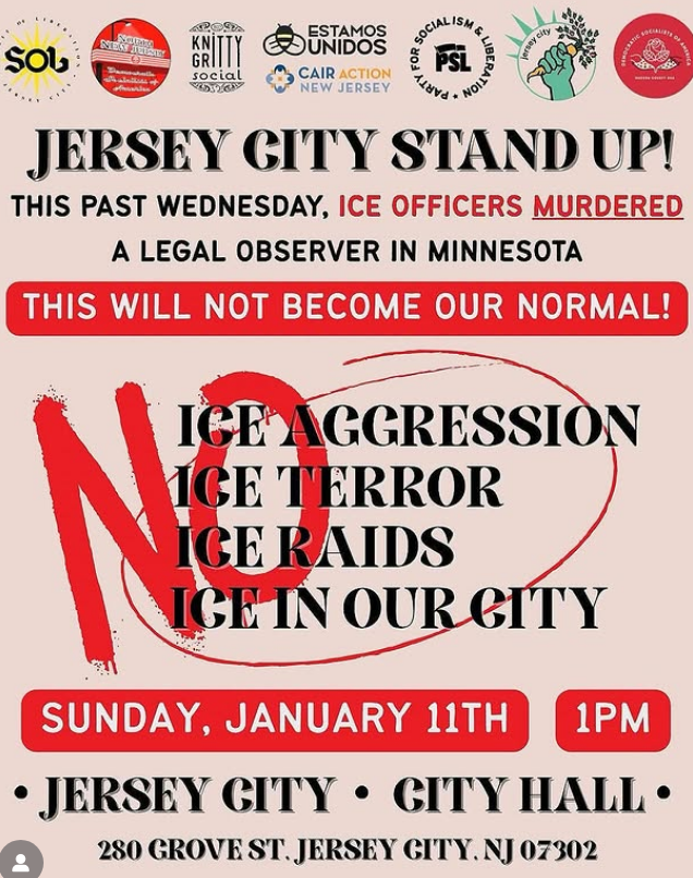 NJ has launched numerous responses to the developments with the Trump administration’s apparent escalation toward lethality as punctuated by the summary street execution by a federal police murderer. The ICE murderer fled the scene in his vehicle after pumping deadly bullets into the head of Renee Nicole Good as she tried to flee armed assailants attacking her. Trump’s immediate response was probably detrimental to ICE’s defense from the legal responses to the summary execution. He claimed it as a legitimate action by ICE without investigation and he is showing a total lack of understanding even of common police protocol (often violated) not to shoot people if the police believe they are fleeing. The attorneys will have a field day since his statement will be used to show that lethal force is intentional US policy now. His statement was clearly an announcement of support for greater lethality in the ICE crackdown including its response to community defense operations. It is tantamout to a declaration of war against our communities.