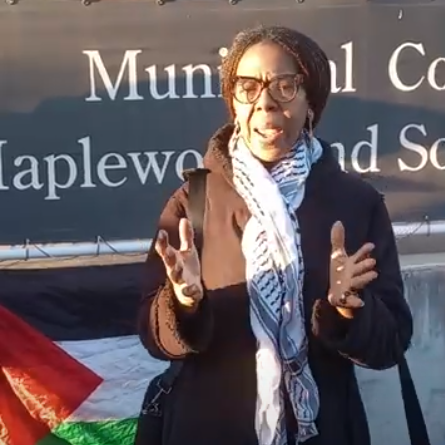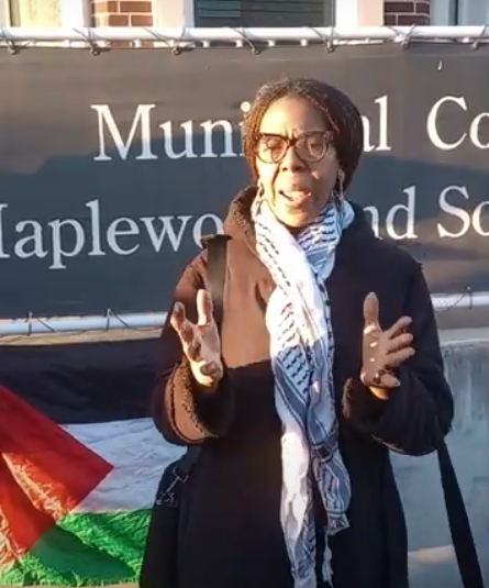 In Lisa Davis’s case, in 2024 she was at a cease fire rally in South Orange – typical of the rallies / vigils held there and in Maplewood on a weekly basis to end the US – Israel genocide in Gaza. She was a participant, not an organizer and not a speaker. She got there late and was not involved in leading chants or otherwise leading the rally.