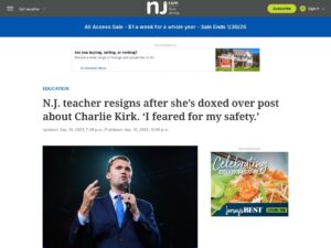 Now we have a new free speech threat and it is claiming victims around NJ. Teachers, professors, doctors, professionals of every stripe are coming under attack. In Linden the schools went on lockdown over threats by apparent MAGA Kirk followers or opportunists over someone with a Kirk reaction unapproved by self appointed MAGA enforcers (apparently).