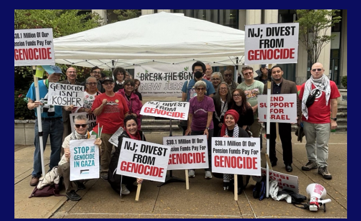 As Mindy Greenspan of Jewish Voice for Peace explains, “Break the Bonds is a grassroots campaign devoted to cutting all of New Jersey’s financial support for the genocide and Israeli apartheid of the Palestinian people. The campaign started by targeting the unrestricted loans given by NJ in the form of Israel bonds and through our pressure the loan amount was reduced by $5 million. While we continue to call on the SIC to divest completely from Israel Bonds we are working to strengthen the language in the Environmental, Social & Governance (ESG) policy and make it mandatory so that NJ makes no investments in entities that support genocide, war crimes and human rights violations. We are currently focusing on the large investments in the AI tech company Palantir which has enabled the genocide in Palestine, war crimes in Iran and terror to our immigrant communities at home.”