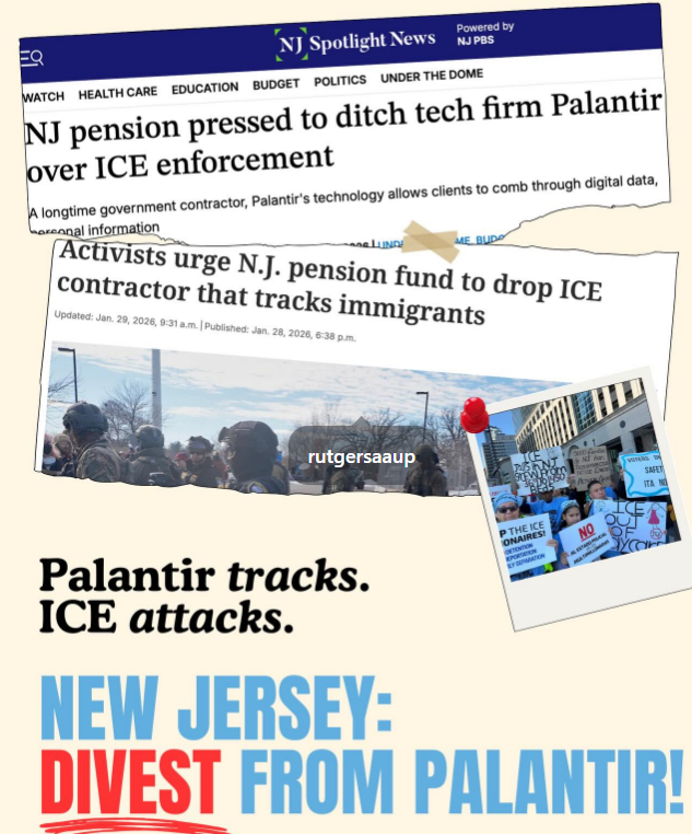 Yesterday, we joined arms with our brothers and sisters from organized labor @rutgersaaup whose pension funds are invested in Palantir and who testified that their hard earned dollars DO NOT belong to Palantir.