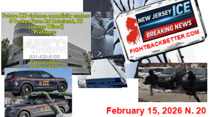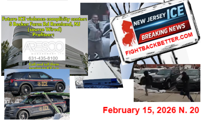 Monday (President’s Day), February 16, an event that is starting to take a statewide dimension participation wise there will be a culmination of the demand against the ICE facility in Roxbury, 3 – 5 pm at Ledgewood Commons, Ledgewood – park at 211 E. Main St. walk 2 blocks.