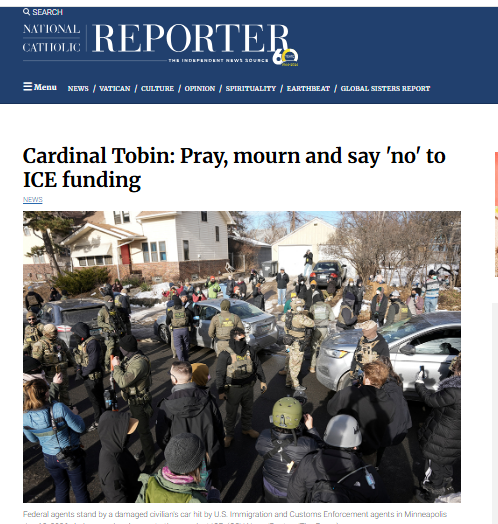 11 am – 12 pm: Rally thanking Cardinal Tobin for his public witness- outside St. Patrick’s pro-cathedral 91 Washington St. Newark. Visuals include signs and banners supporting the Cardinal for speaking out about immigration enforcement and US foreign policy. The program will include chants and music.