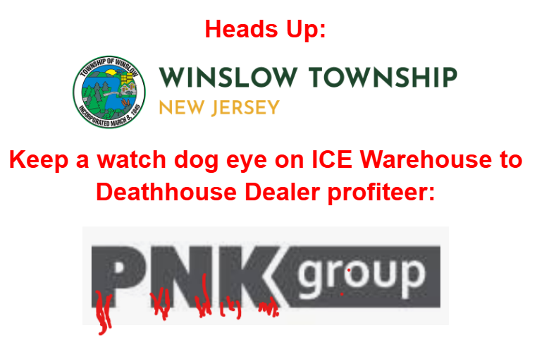 PNK Group, which was the seller of the warehouse to ICE in Social Circle Georgia owns a warehouse in (or near) Winslow, NJ. Articles have described the property on 7 Waterford Road, as being in Winslow, Hammonton and in Waterford. Hopefully residents of all 3 would not be too fond of having an ICE industrial harm center in their communities.