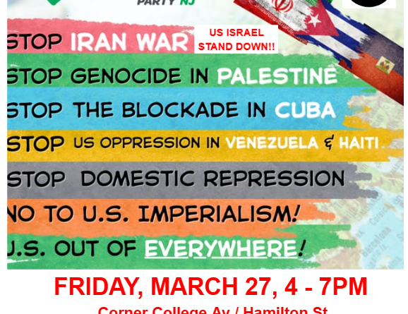Rutgers NO WAR / NO ICE Protest on Eve of NO KINGS Fri. 3/27 4 – 7pm Hamilton / College Av – Right of Way Free Speech Protest