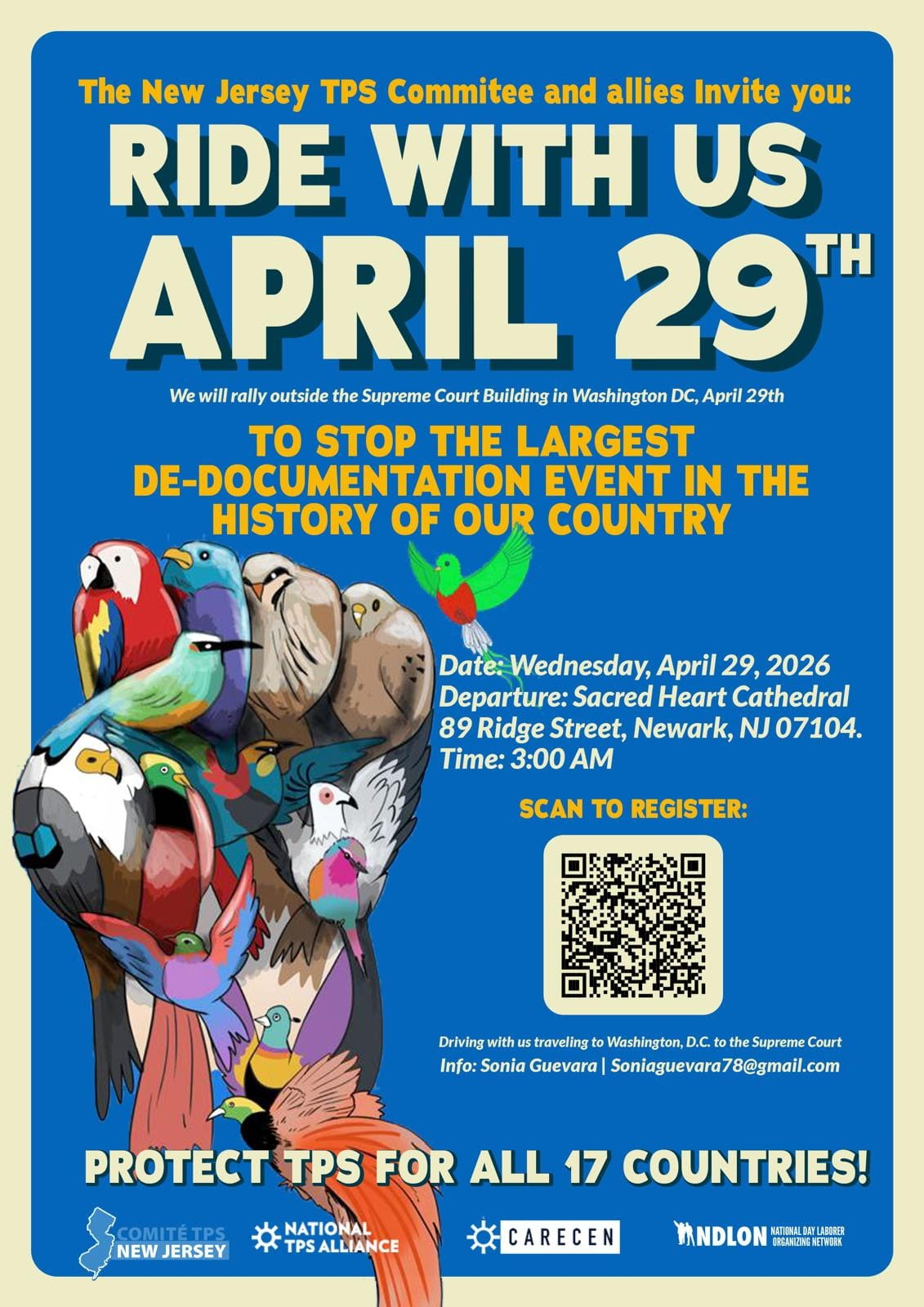 NJ TPS Committee Mobilizes Bus to Wed. April 29 Rally Opposing Largest De-Documentation in US History – Get on the Bus!