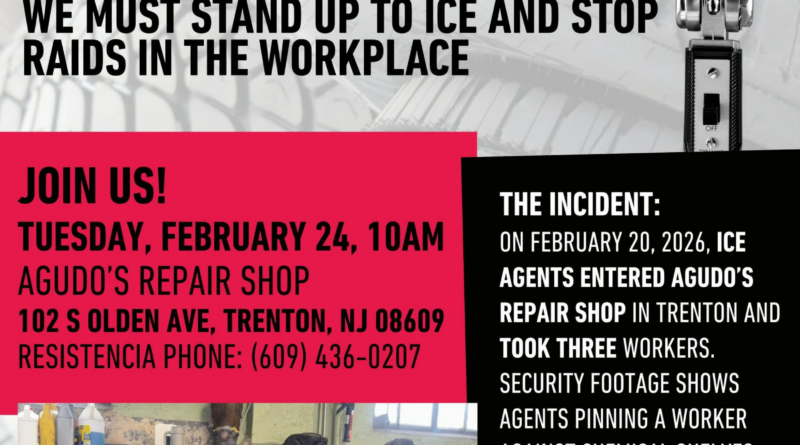 Please attend the press conference Tuesday, February 24, 10 am, Agudo’s Repair Shop. 102 S. Olden Av., Trenton NJ 08409